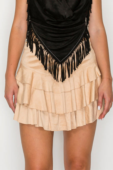 Fringe Halter Crop Top & Tiered Ruffle Mini Skort Set (Skort Only)