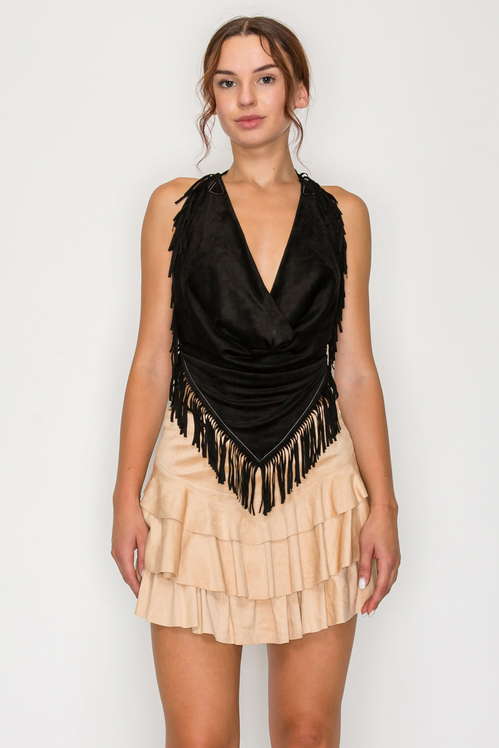 Fringe Halter Crop Top & Tiered Ruffle Mini Skort Set (Top Only)