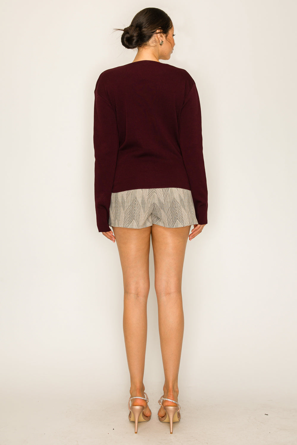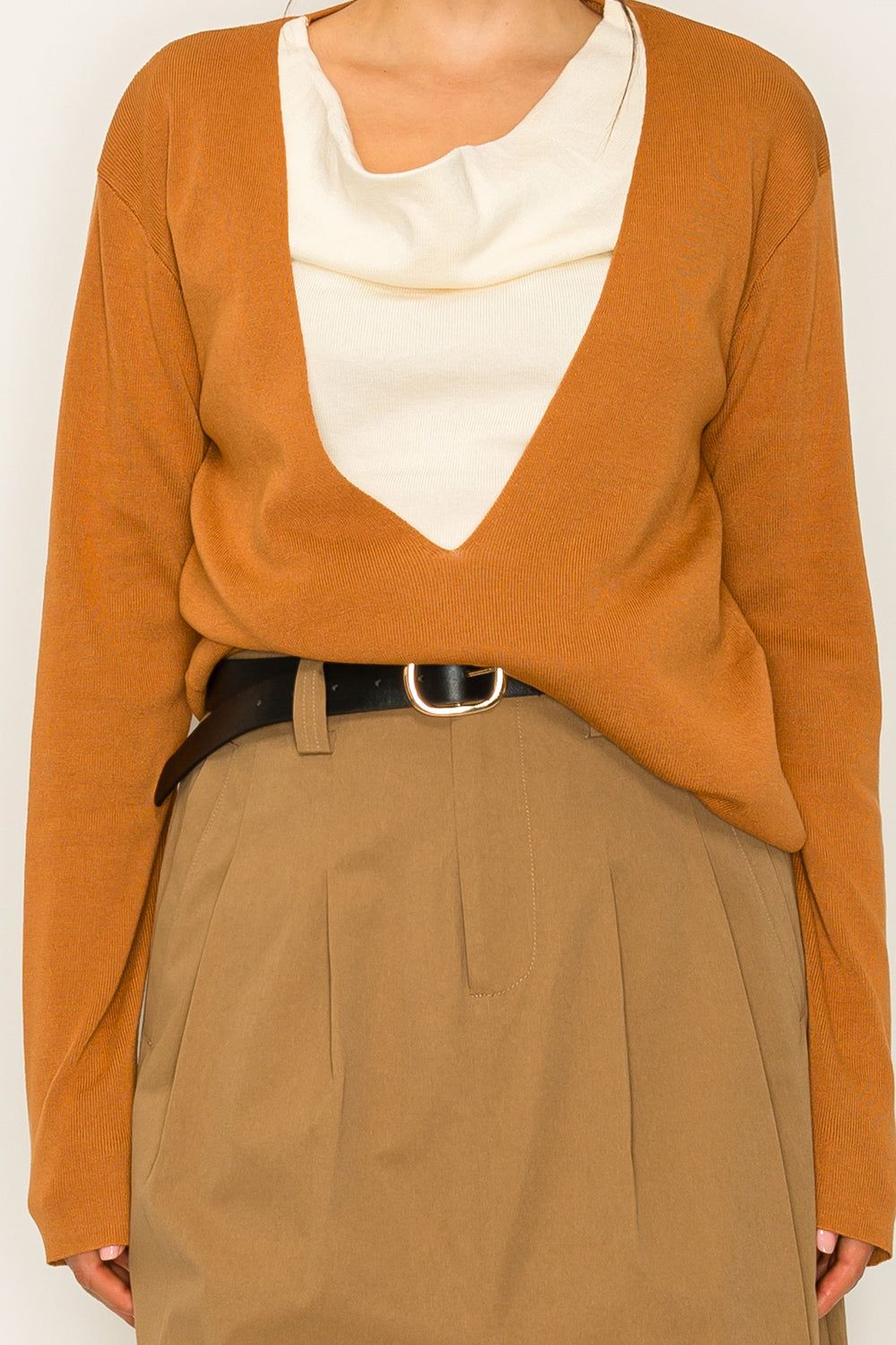 Two-Tone Knit Top with Draped Contrast Detail (TOP ONLY)