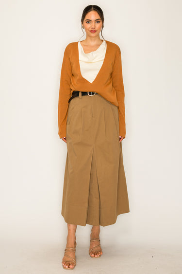 - Deep V-neckline adds dimension and visual interest