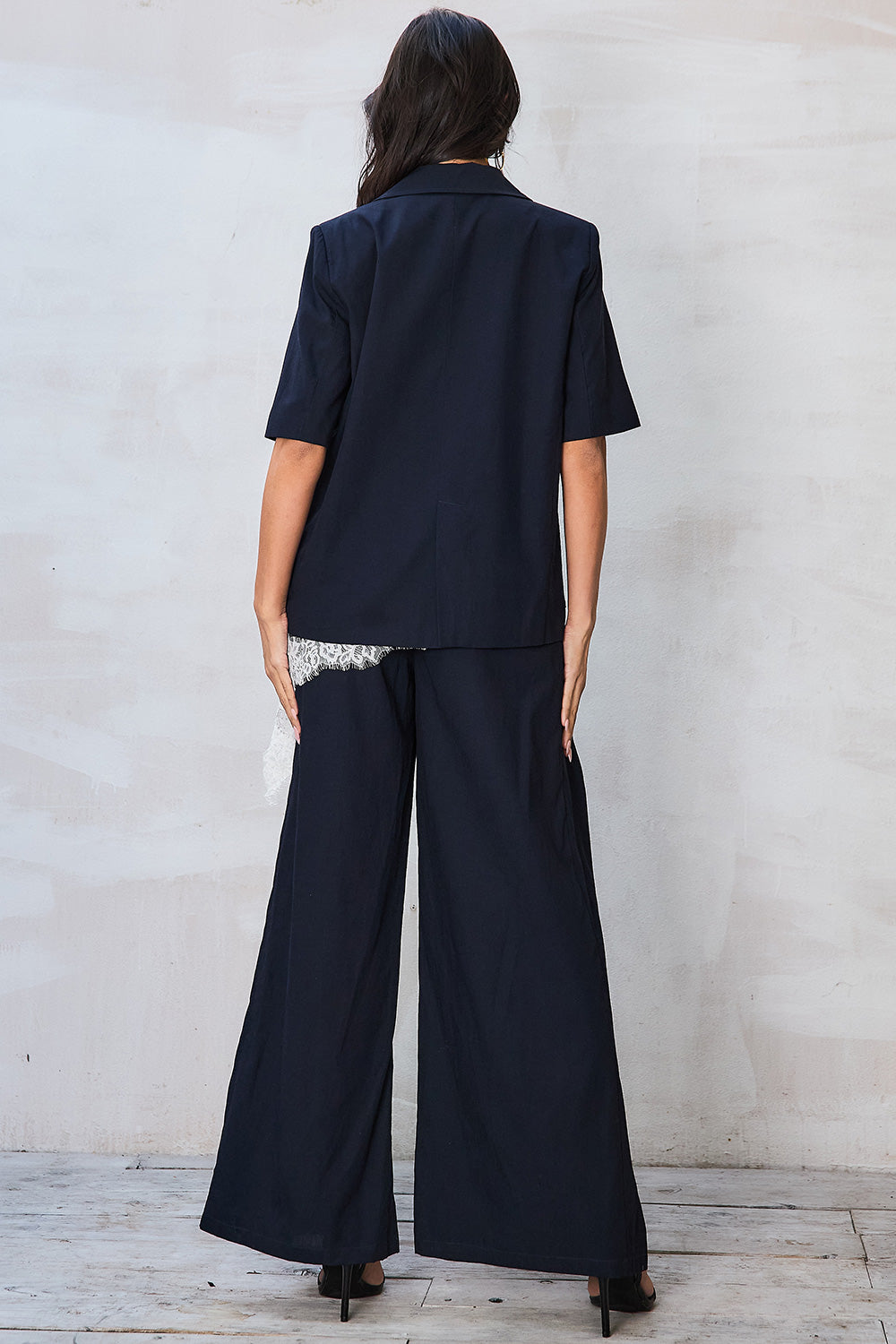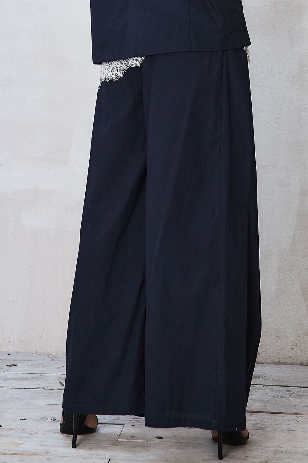 - High-waisted wide leg pants