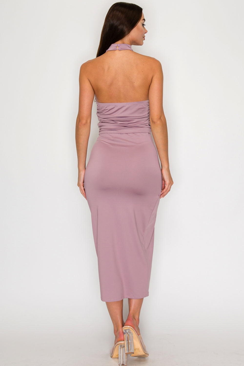 Metal Accent Halter Neck Top & Midi Skirt Set